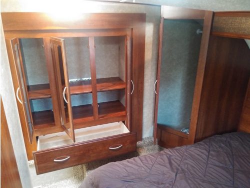 Un seul propriétaire. Modèle (floor plan) très spacieux (rear living) avec fenestration qui permet d’avoir un super vu sur votre terrain de camping et à l’arrière.