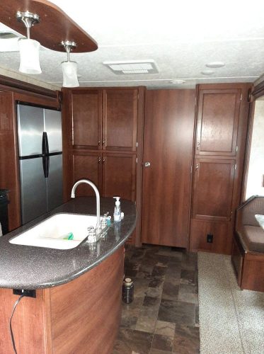 2 chambres fermées, frigo double, cuisinette extérieur (frigo, rangement, poêle au propane), beaucoup de rangement.