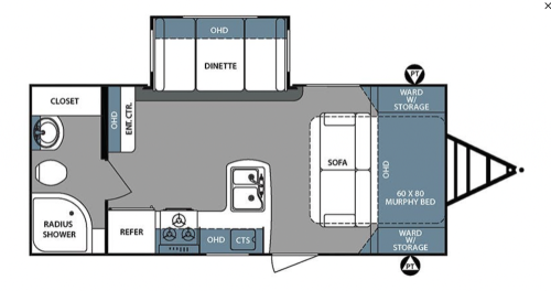 Une extension pour la dinette. Beaux espaces intérieurs éclairés et beaucoup de rangements. Réfrigérateur 2 portes. Cuisinière 3 ronds et four, four micro-onde. Lit Murphy 60 pouces (escamotable). Salle de bain complète.